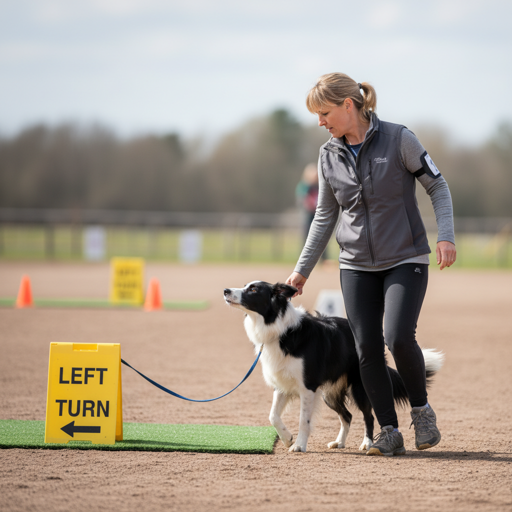 These are fundamental to navigating any course. For a Right Turn, you’ll make a crisp 90-degree turn to your right. Your dog, being on your left, has to speed up slightly to keep up and stay in heel position. For a Left Turn, you’ll turn 90 degrees to your left. This requires you to be careful not to crowd your dog, as they will need to slow down and pivot with you. Practice these in an open space, rewarding your dog for staying close to your leg through the turn.