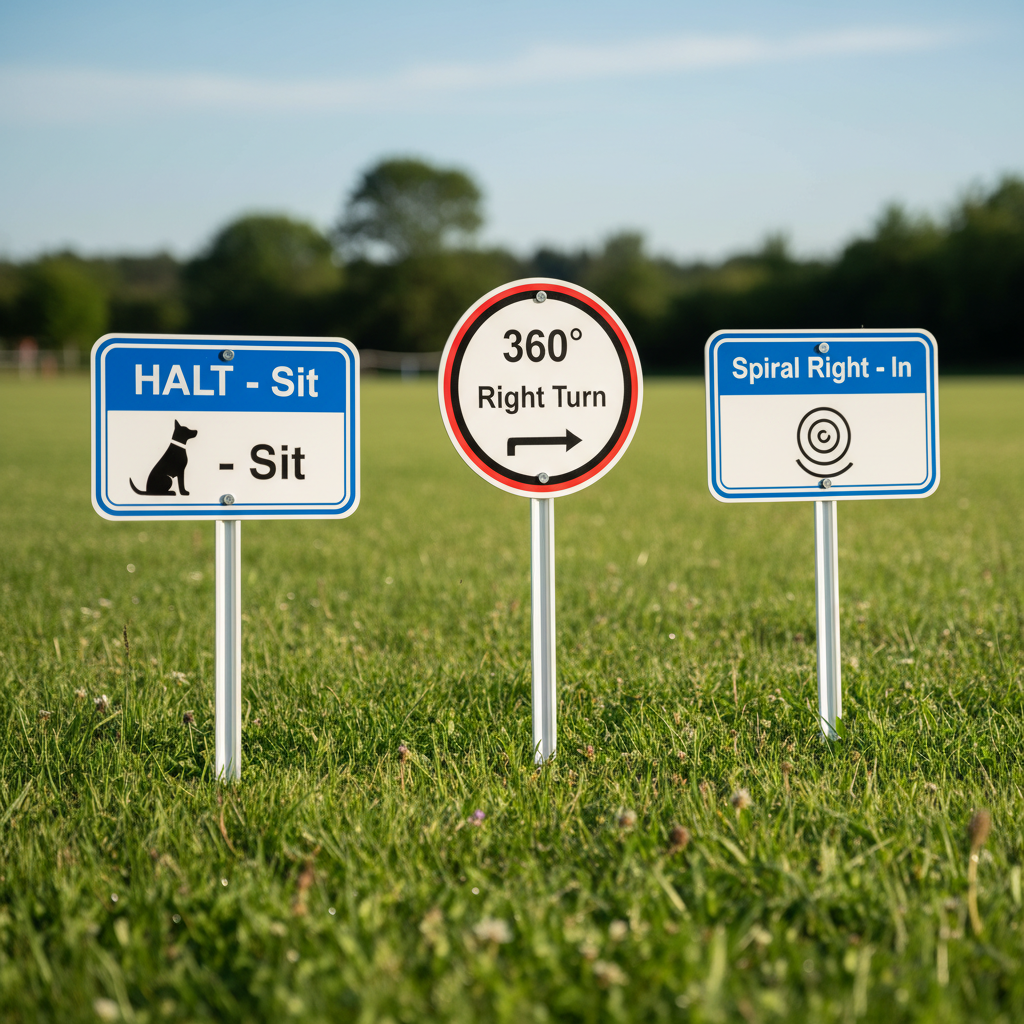 Rally is all about movement. The course will guide you through a series of turns, changes in speed, and flowing exercises designed to test your dog’s ability to stay with you. These signs challenge your connection and communication while on the move.