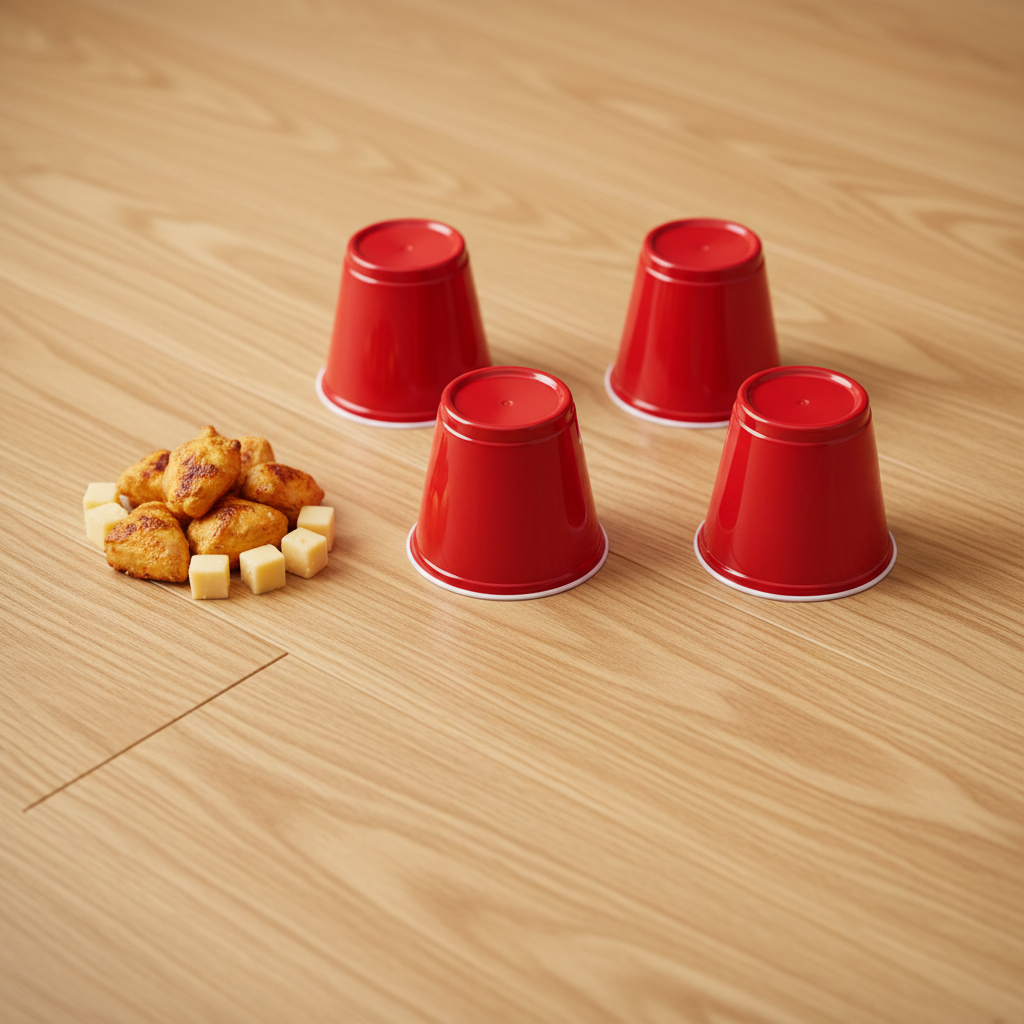 - Three Identical Cups: The key here is identical. You don’t want your clever pup to identify the ‘treat cup’ by its color or a specific marking. They should be opaque so your dog can’t see the treat inside. Lightweight plastic cups, old yogurt containers, or even small cardboard boxes work perfectly. Just make sure they’re durable enough not to be instantly crushed by an enthusiastic paw or nose.
