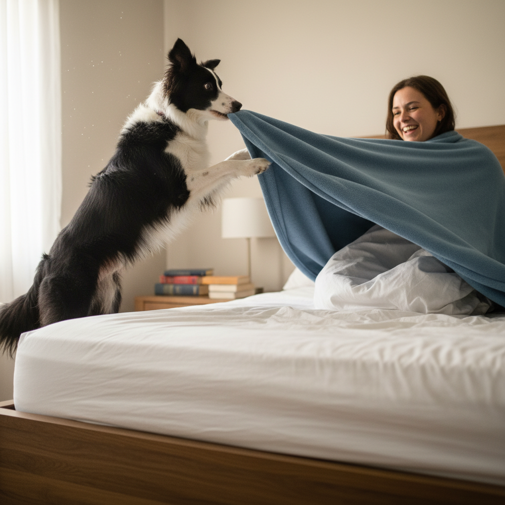 Once your dog is reliably pulling the blanket fully over you, it’s time to name the behavior. Just before you point to the tab, say your chosen cue clearly. It could be “Tuck me in,” “Blanket,” or “Cover me.” After a few repetitions, they will begin to associate the words with the action.