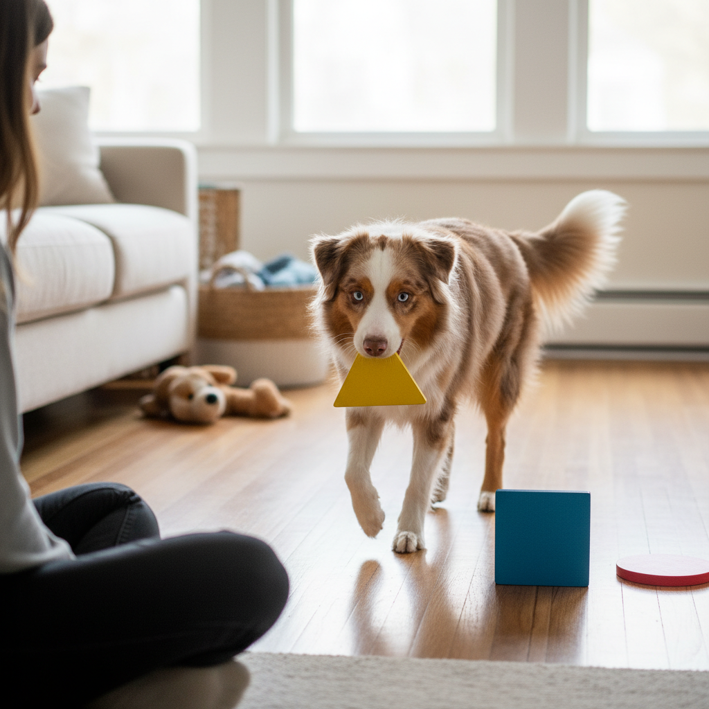 Instead of just touching the shape, teach your dog to pick it up and bring it to you. This adds a physical component to the mental puzzle. Start by rewarding them for just picking up the cued shape. Gradually, you can shape the behavior of them bringing it closer to you until they’re delivering it right to your hand. Imagine asking, “Bring me the square,” and having your pup proudly trot over with it!