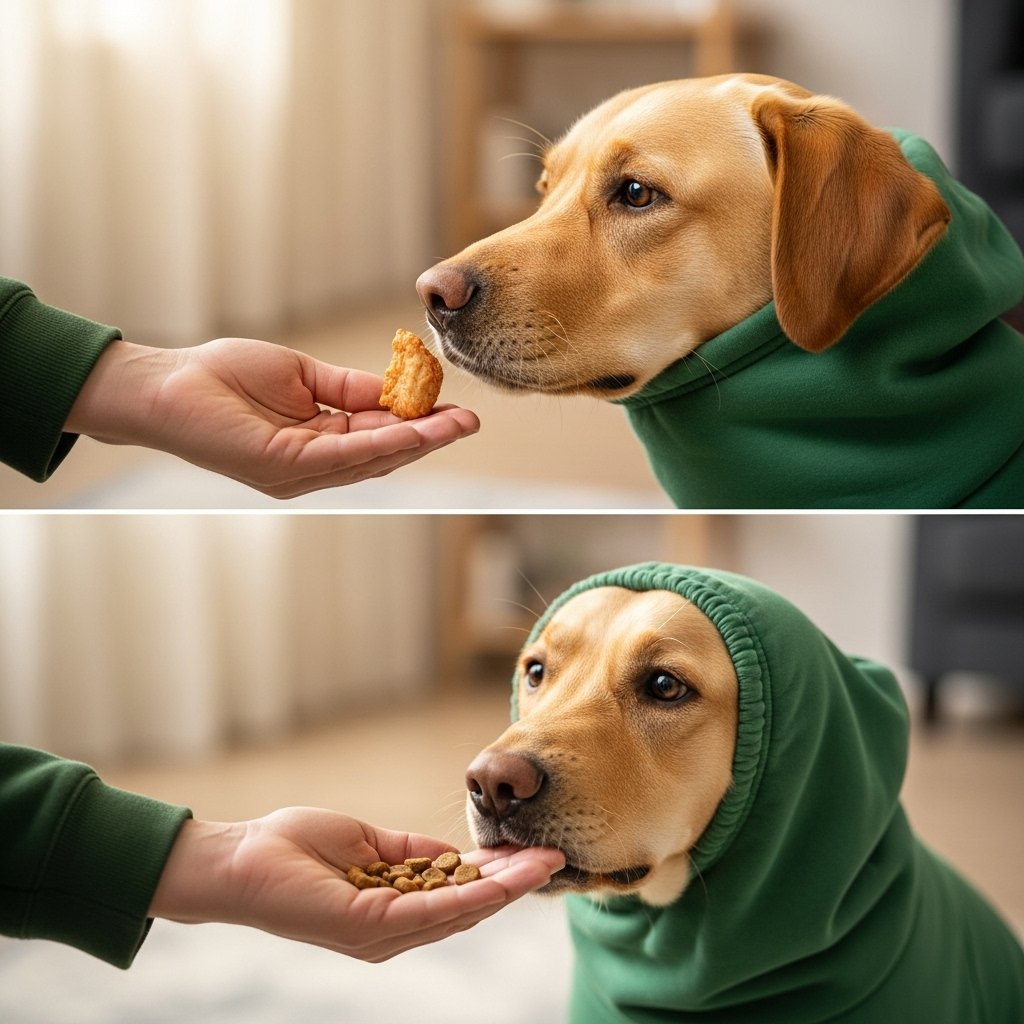 | 3. Duration Building | Dog comfortably wears hoodie for extended time. | 2-5 minutes | Steady stream of treats only while the hoodie is on. |