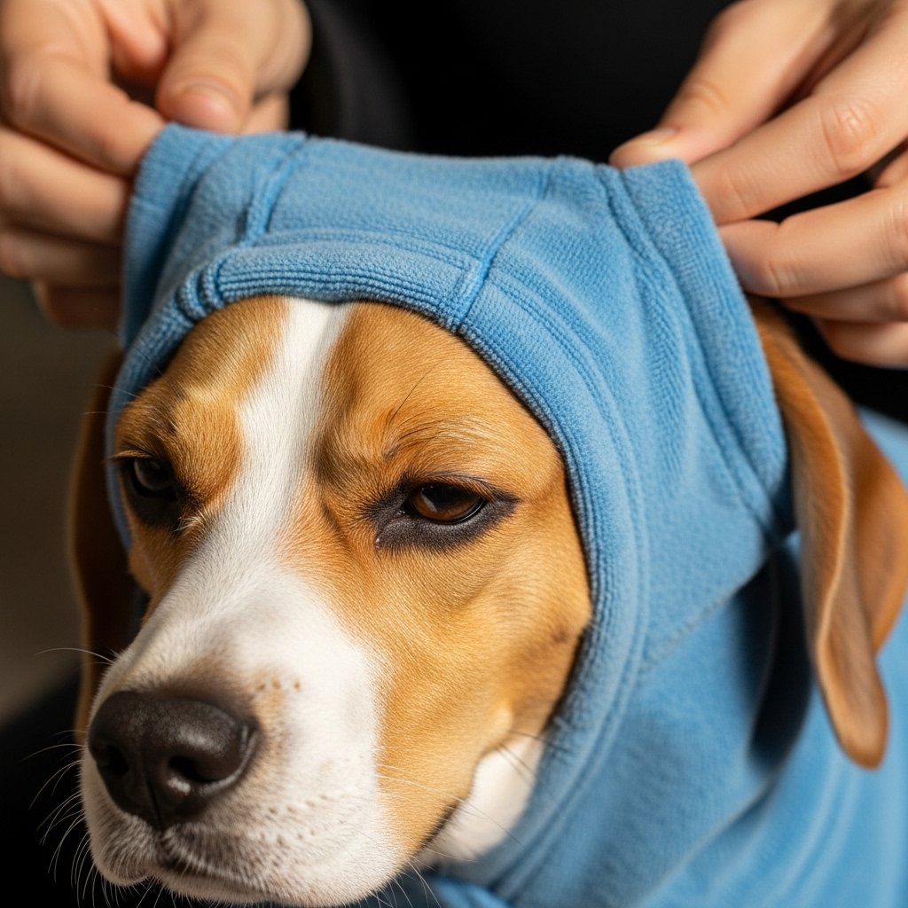 Think of it like a gentle, reassuring hug for your dog’s head. The mild compression around the ears and skull applies light pressure to acupressure points, which can have a surprisingly powerful calming effect. This is similar to the principle behind swaddling an infant or using a weighted blanket or anxiety wrap for humans and pets. This gentle, constant pressure helps soothe the nervous system, making your dog feel more secure and grounded in a situation that might otherwise feel overwhelming.