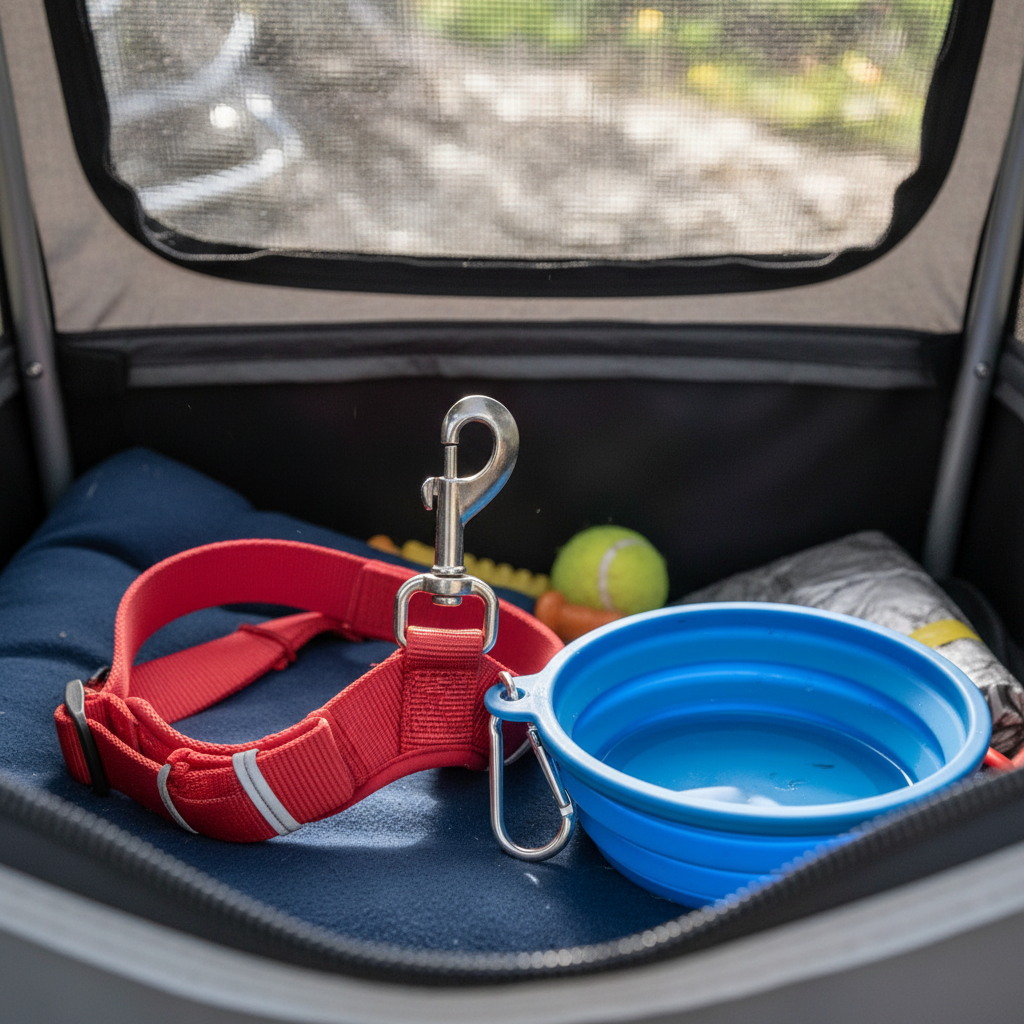 - Harness Up Inside: Before you add any motion, practice getting your dog into their harness and clipping the internal safety leash while they are inside the trailer. Reward them for their cooperation. The leash should be short enough to prevent them from jumping out, but long enough for them to sit, stand, and turn around.