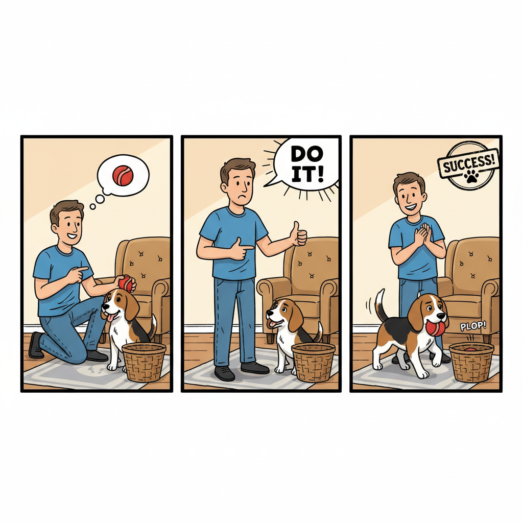A Common Mistake to Avoid: Don’t add extra words or get frustrated. If you start saying ‘No, Do It! C’mon, touch the box! Do it!’, you’ll only confuse your dog. Silence is your best tool while they are thinking. The cue is ‘Do It!’—nothing more.