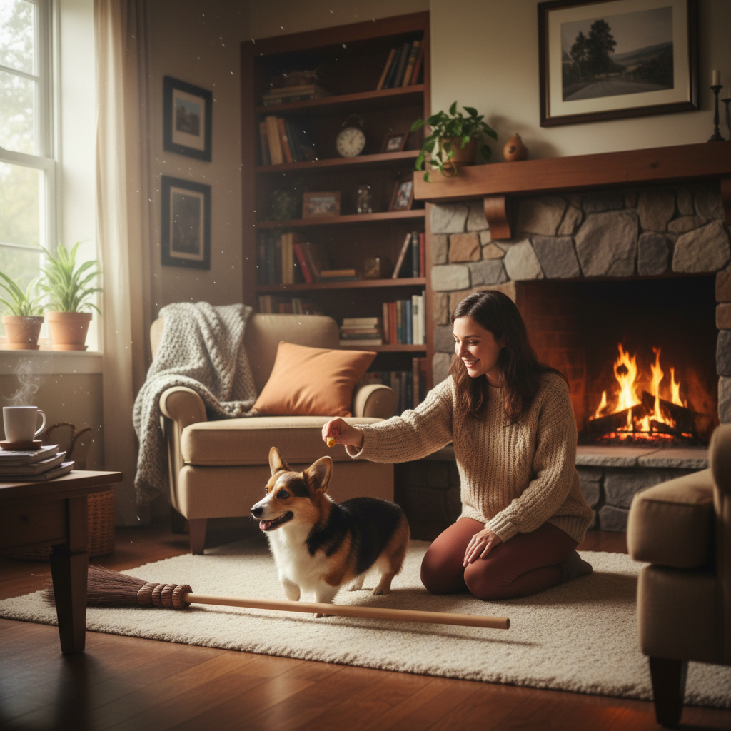 - An Indoor “Obstacle”: Start your training indoors with something non-intimidating. A broomstick laid on the floor, a rolled-up towel or yoga mat, or even a couple of books to mark a space are all perfect options. The key is to start low and simple.