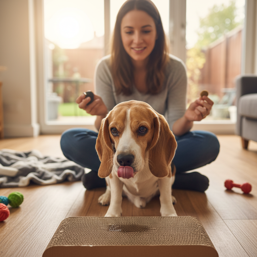 First, we just want your dog to think the board is the best new toy ever. Don’t ask for any scratching yet. Simply place the board flat on the floor. The second your dog shows any interest in it—sniffing it, looking at it, stepping on it—click (or say “Yes!”) and give them a treat. Drop the treat right on the board to build a stronger positive association. Do this for a minute or two, then put the board away. The goal is to leave them wanting more.