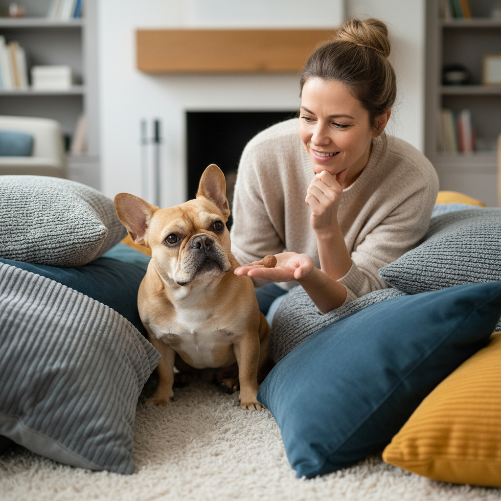 This is where you’ll physically guide your dog into the position. The goal is to make them think it was their idea.