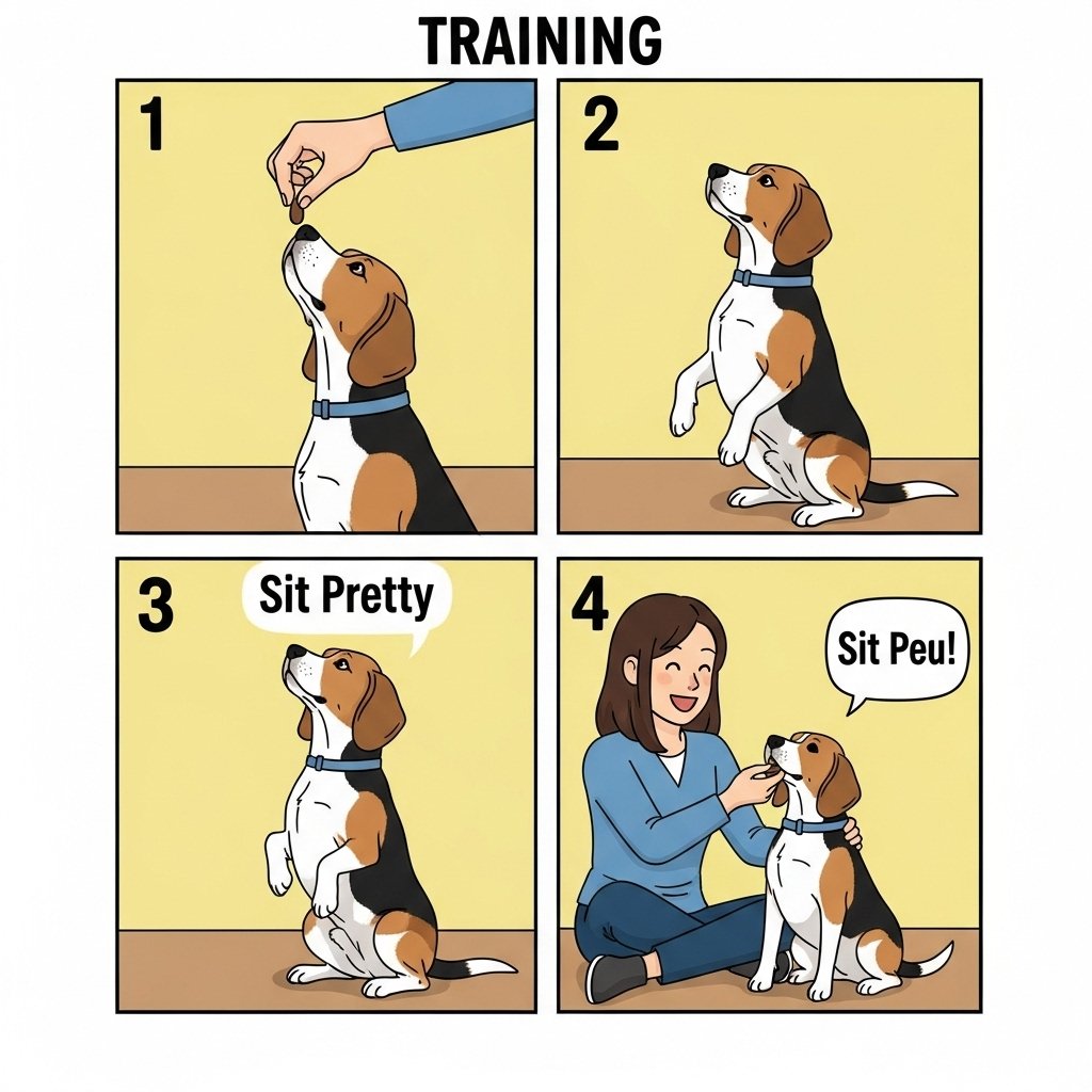 - Step 5: Add the Verbal Cue. Your dog is now reliably responding to your new hand signal. It’s time to name the behavior! Just before you give the hand signal, say your chosen verbal cue clearly and cheerfully, such as ‘Sit Pretty!’ or ‘Beg!’ After a few repetitions, your dog will begin to associate the words with the action. Eventually, you can test the verbal cue on its own. If they do it, throw a jackpot of treats! If they look confused, that’s fine—just pair it with the hand signal a few more times before trying again.