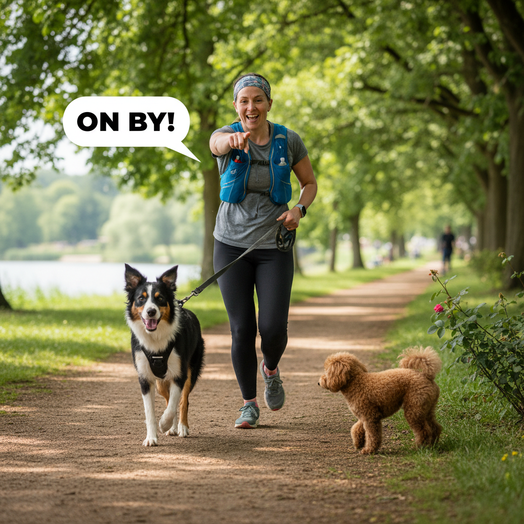 - “On By!” or “Leave It!”: This is your focus command. It tells your dog to ignore distractions—squirrels, other dogs, interesting smells, blowing leaves—and continue straight ahead. This command is crucial for safety. Practice by walking past low-level distractions. The moment your dog looks at the distraction, say “On By!” in an upbeat voice and reward them the second they look forward again.