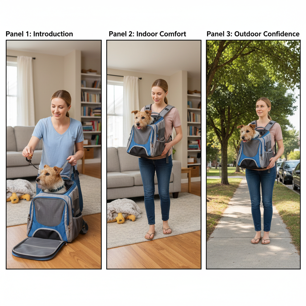 Your first outdoor adventure should be somewhere calm, like your backyard or a quiet street during an off-peak time. Just walk around for a few minutes. Let them experience the new sights, sounds, and smells from the safety of their bag. This helps them generalize the training from the controlled environment of your home to the unpredictable real world.