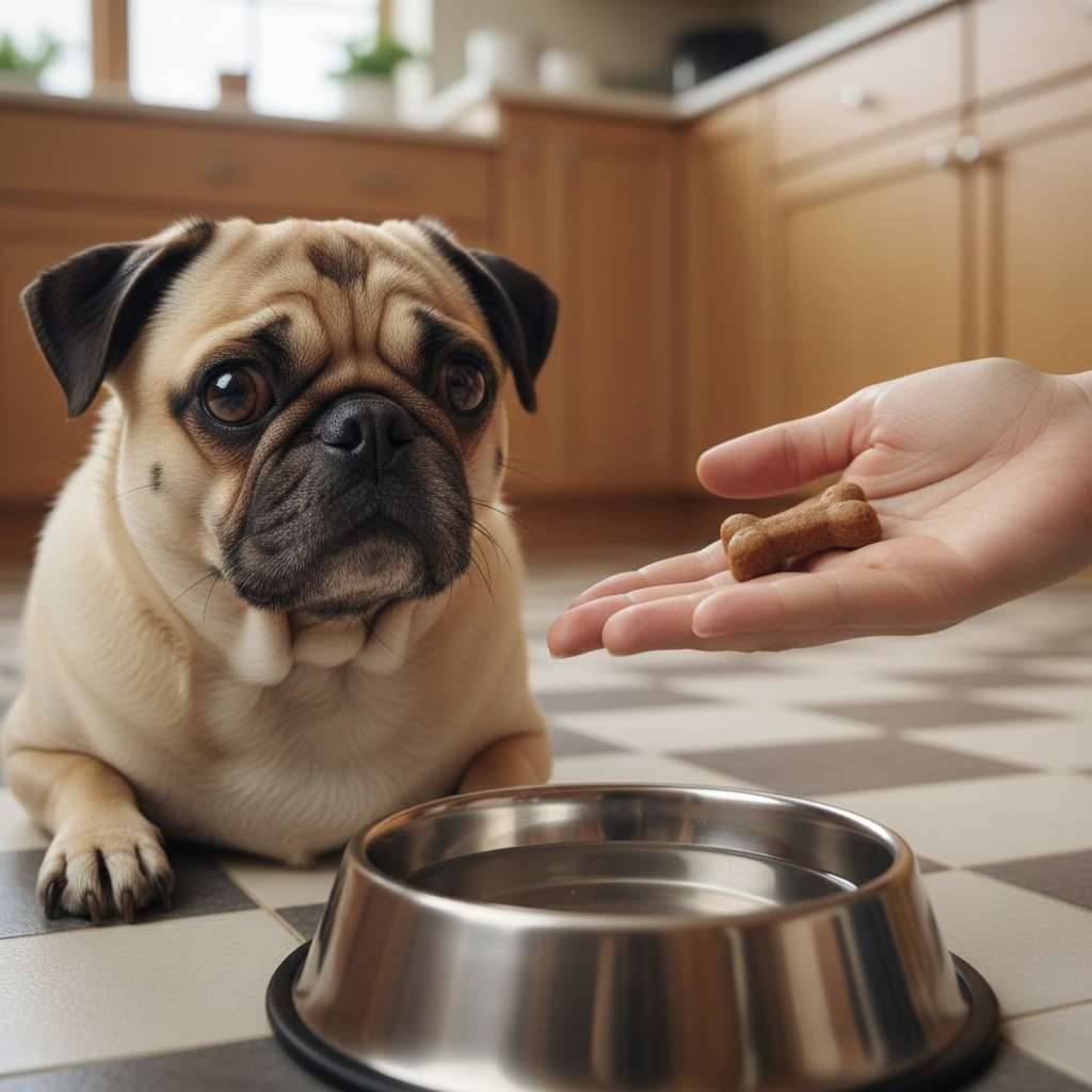 It’s time to add water! Pour just a tiny amount of water into the bowl—barely enough to cover the bottom. Now, repeat Step 3. Hold a treat just under the surface of the water. As your dog reaches for it and exhales to sniff, their breath will create a bubble or a ripple. The instant you see that bubble, click/mark and give a huge reward! This is the ‘Aha!’ moment. They will start to connect the action of exhaling in the water with the reward.