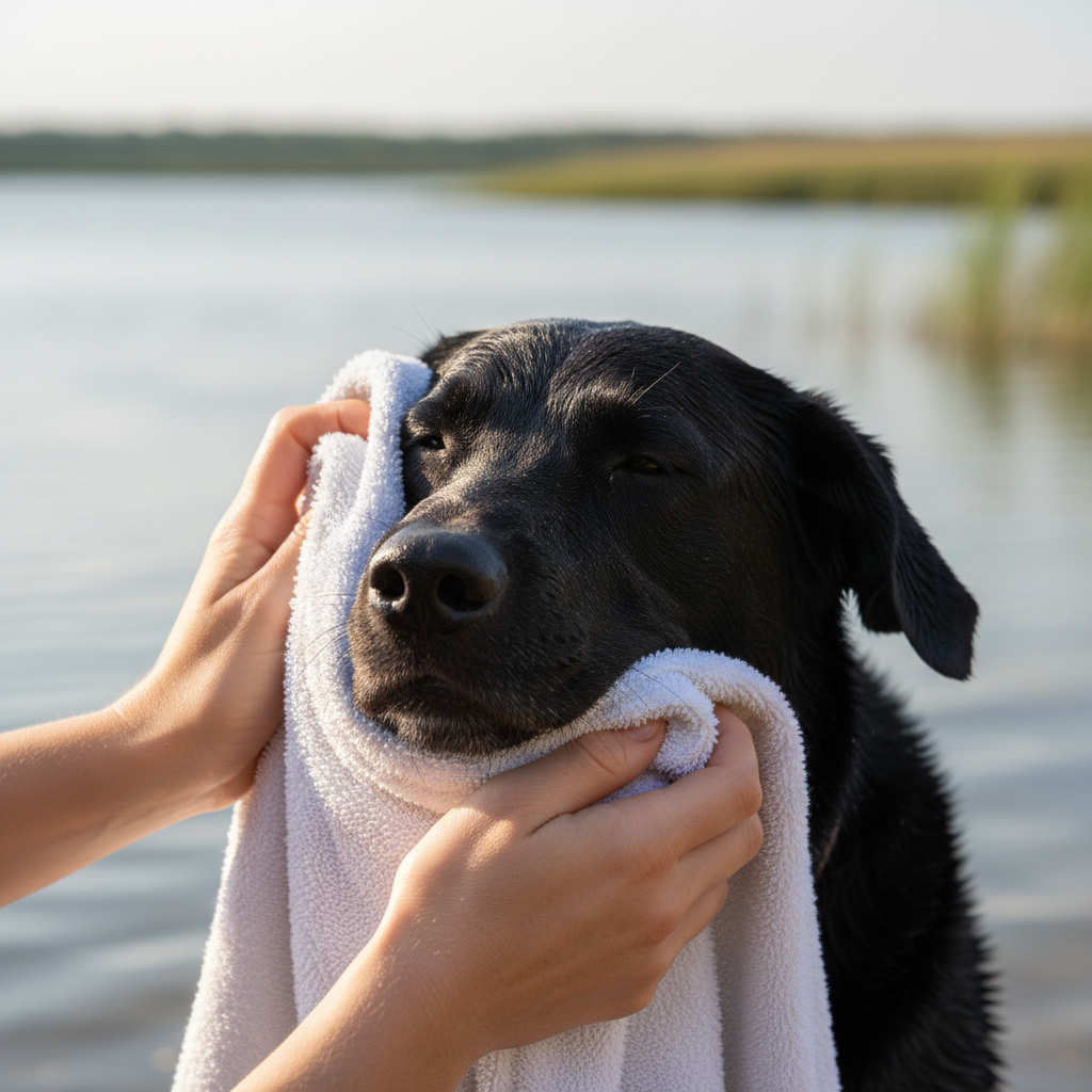 After each session, it’s a good idea to gently wipe your dog’s face with a towel. This helps prevent any skin irritation from being constantly damp and is a nice, calming way to end your training time together.