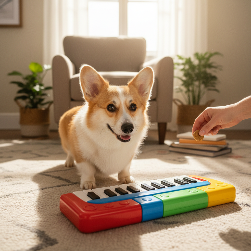 Expert Tip: When choosing a keyboard, avoid any with small parts that could be chewed off and swallowed. A simple, one-piece toy keyboard is often the safest and most effective choice for this trick.