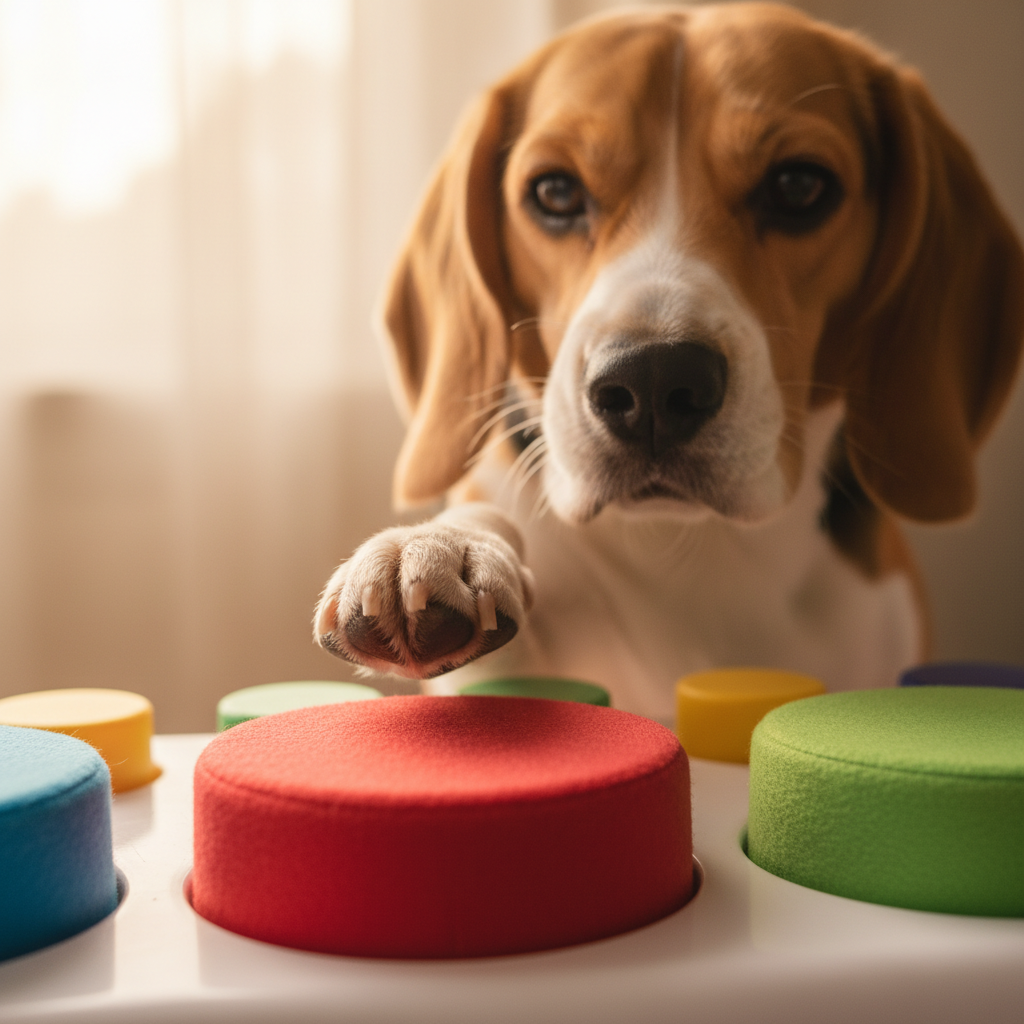 Troubleshooting Tip: If your dog keeps using their nose, try holding a treat in one hand to occupy their nose while you use your other hand to gesture towards the keyboard to encourage a paw touch. You can even gently tap the keyboard yourself to show them what you want.