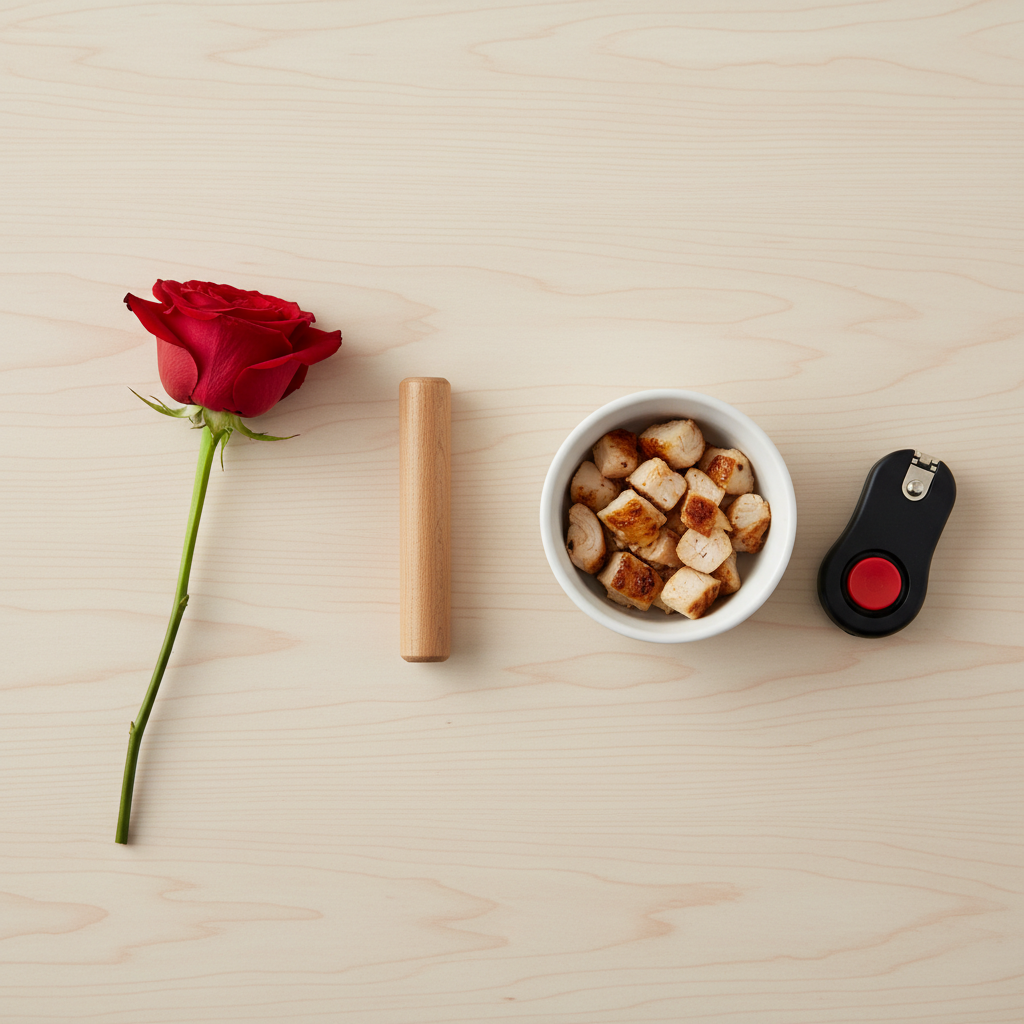- A Training Object (The ‘Stunt Double’ Rose): We won’t start with a real flower. They’re too fragile and tempting to chew! Instead, start with something sturdy. A lightweight wooden dowel, a thick plastic straw, or even a smooth, safe stick from the yard (with no splinters!) works perfectly. The object should be about 6-8 inches long.