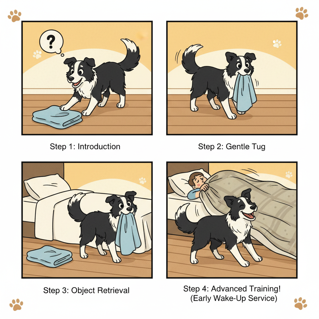 - Step 6: Add the Final Cue and Context. Now that your dog understands the physical action, we can attach our final ‘alarm clock’ cue. As you lie in bed (at first, just pretend to be asleep), say your chosen cue—like “Wake Up!” or “Good Morning!”—and then encourage them to pull the covers. When they do, celebrate enthusiastically! Over time, with repetition, they will associate the verbal cue with the action of pulling the covers to wake you.