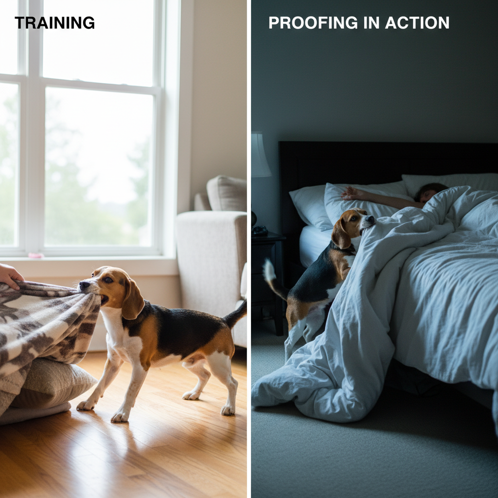 Your dog is now pulling the covers on cue—congratulations! You’ve taught a complex behavior. The final step is ‘proofing,’ which is trainer-speak for making sure the trick works reliably in the real world, not just in a perfect training setup. This is how we turn a fun trick into a functional alarm clock.