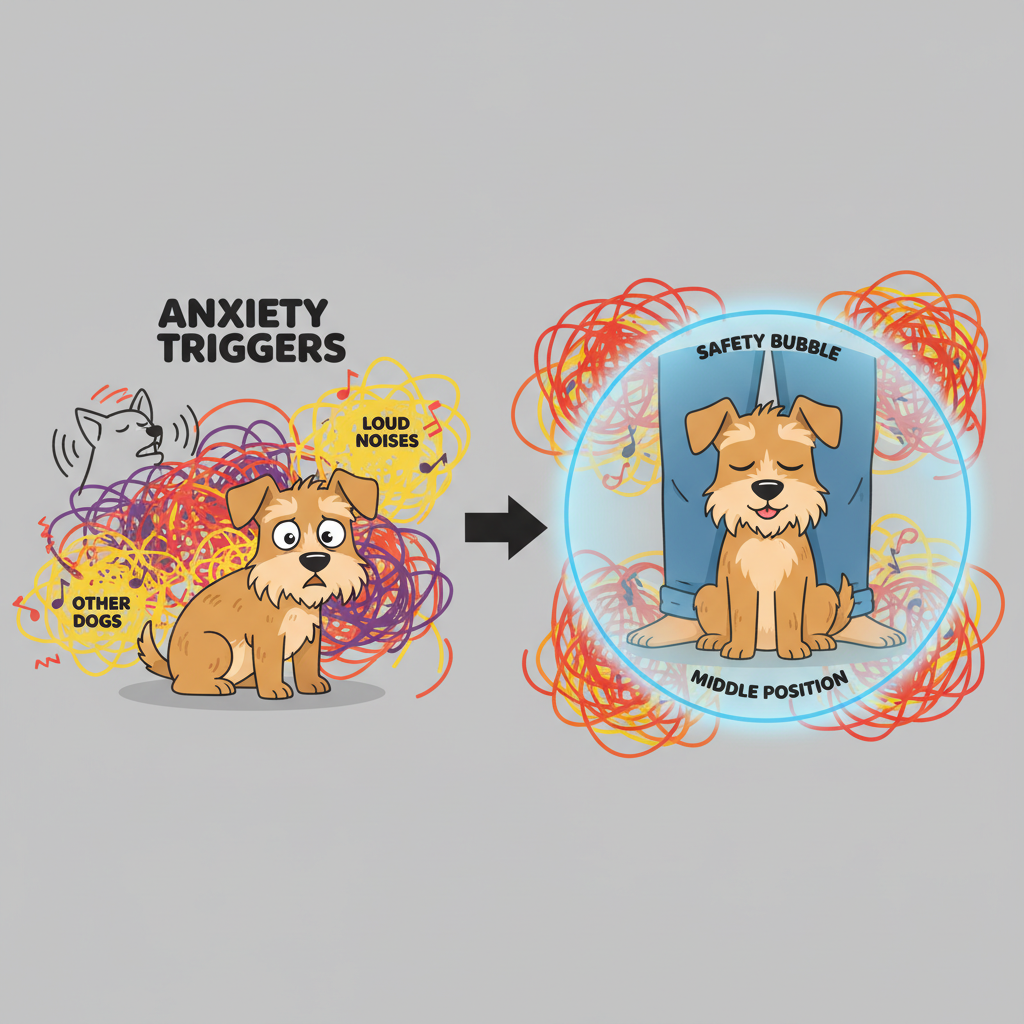 Never underestimate the calming effect of your presence. When your dog is in the ‘Middle’ position, they are in direct contact with you. This pressure and closeness can release oxytocin—the ‘love hormone’—in both you and your dog, which has a naturally calming effect. It’s the same reason weighted blankets are effective for anxiety. Your dog feels your steady presence, hears your calm breathing, and knows their trusted leader is right there with them.