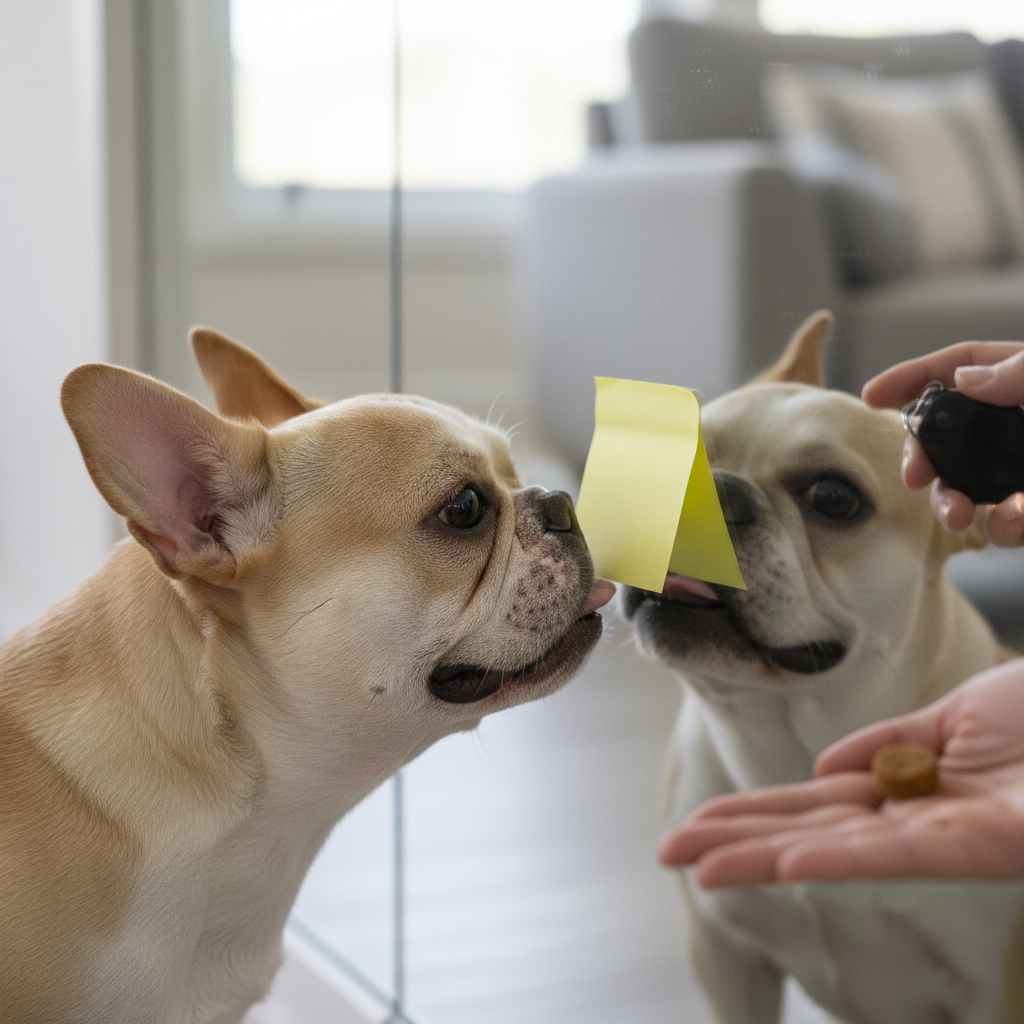 - Step 4: Fade the Target. Once your dog is reliably and eagerly booping the sticky note with their nose, it’s time to start fading the prompt. You can do this in a few ways: cut the sticky note into smaller and smaller pieces over several sessions, or switch to a very light, transparent piece of tape. The goal is to have them touch the same spot on the mirror, even with a minimal physical cue.